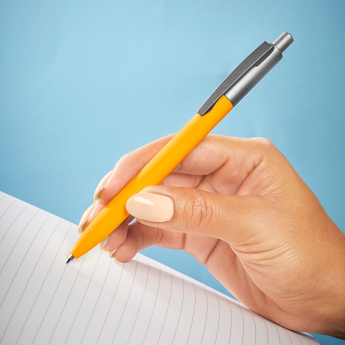 Bolígrafo metálico con terminado mate. Mecanismo pulsador. Incluye estuche de color a tono con el bolígrafo