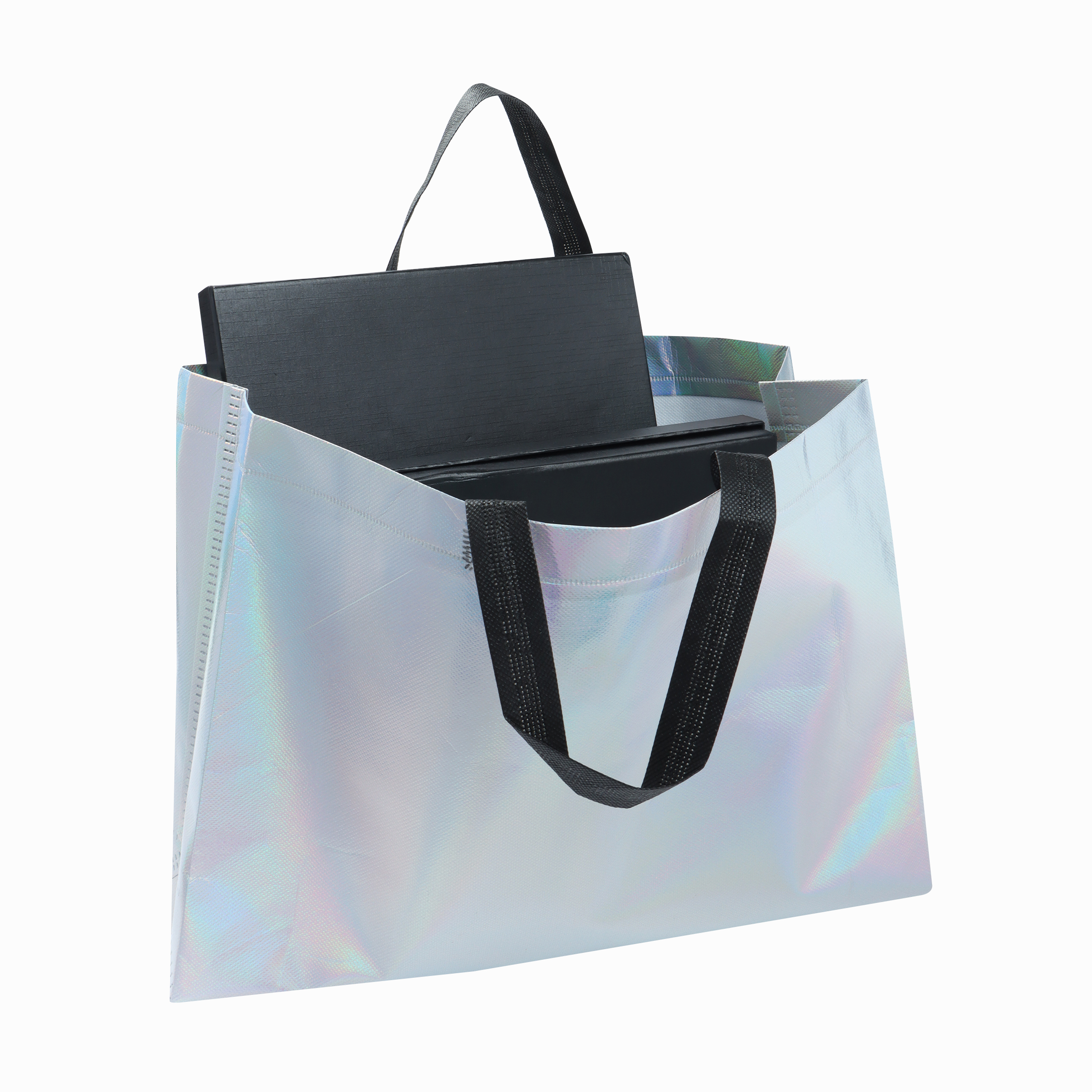 Bolsa ecológica de non woven de 97 gr/m2, metalizada, laminada y termosellada, con asas.