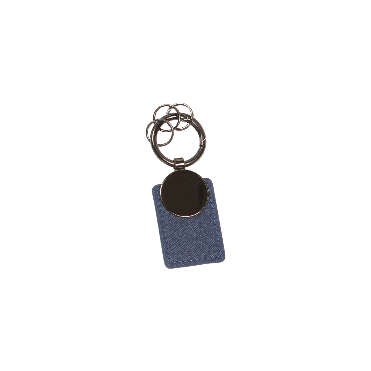 Llavero fabricado en metal y curpiel. Incluye tres pequeños aros y el arillo principal es fácil de manipular. Este diseño innovador incorpora elementos metálicos cromados, que añaden un toque de elegancia y durabilidad al llavero.