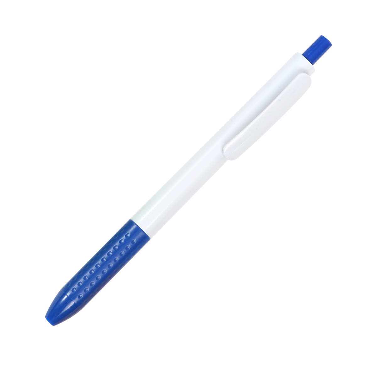 Bolígrafo con barril fabricado en plástico ABS color blanco, con punta y botón en diferentes colores a elegir, mecanismo de botón. Tinta de escritura color negro.