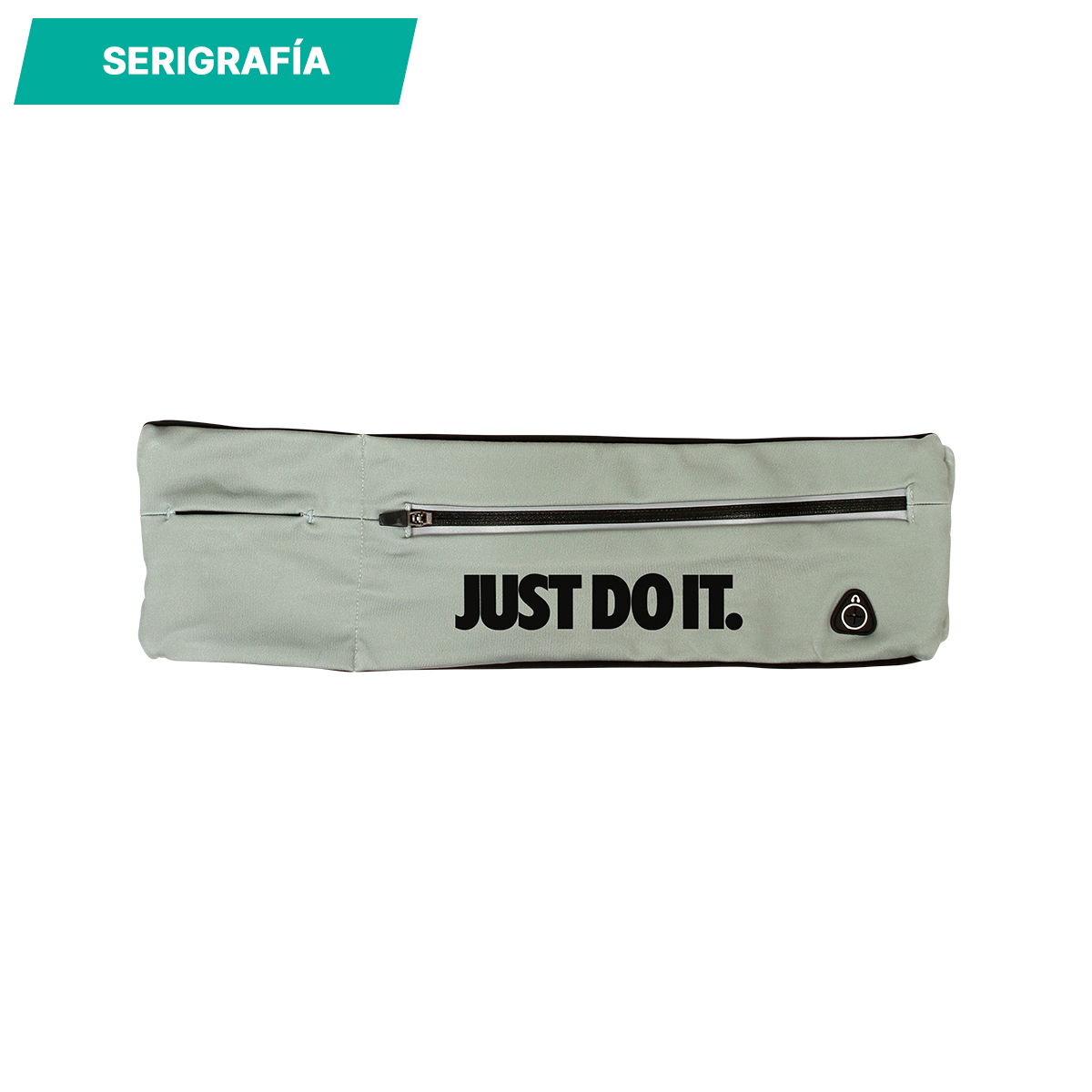 Cangurera con cierre al frente, salida para audífonos, fabricada en poliéster y spandex, diseño resistente y ergonómico, ideal para el uso diario. Incluye correa ajustable.