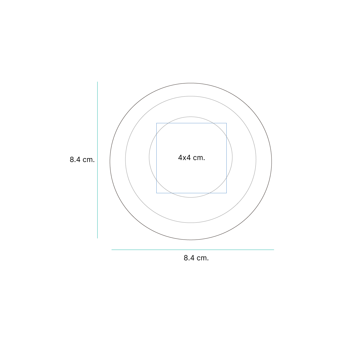 8.4x8.4x.9 cm.