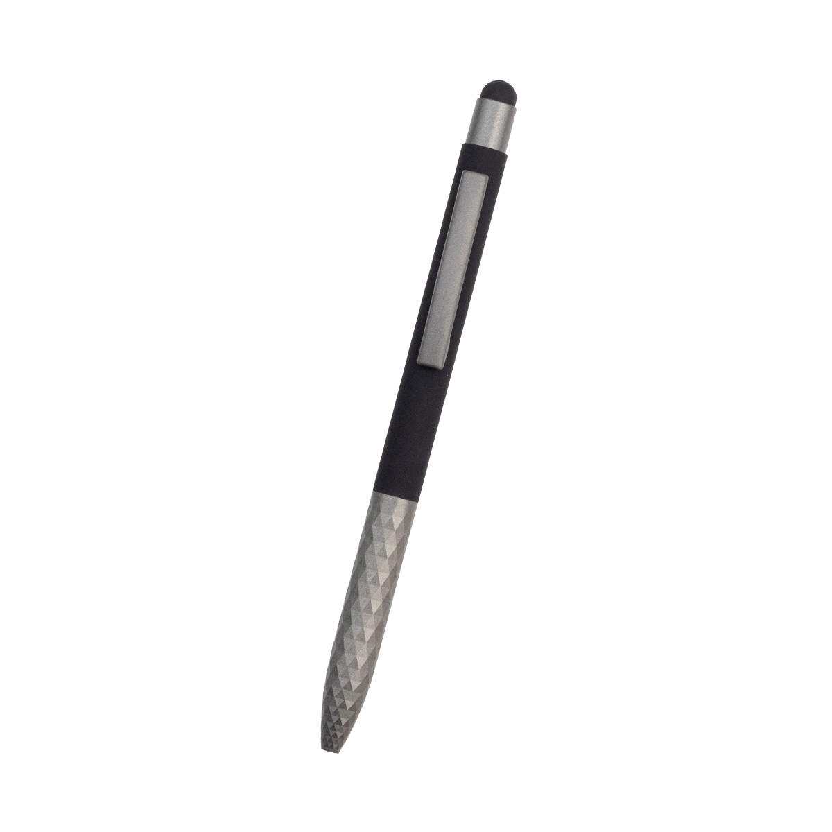 Bolígrafo con barril de aluminio, clip y punta metálicos, con detalles en la punta del bolígrafo que le da un toque de estilo, con touch en la parte superior. Tinta de escritura de gel azul.