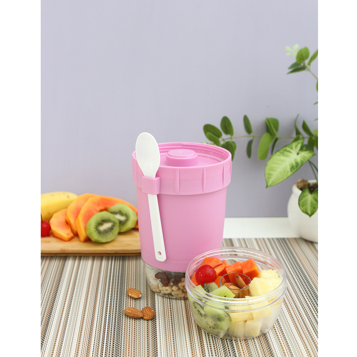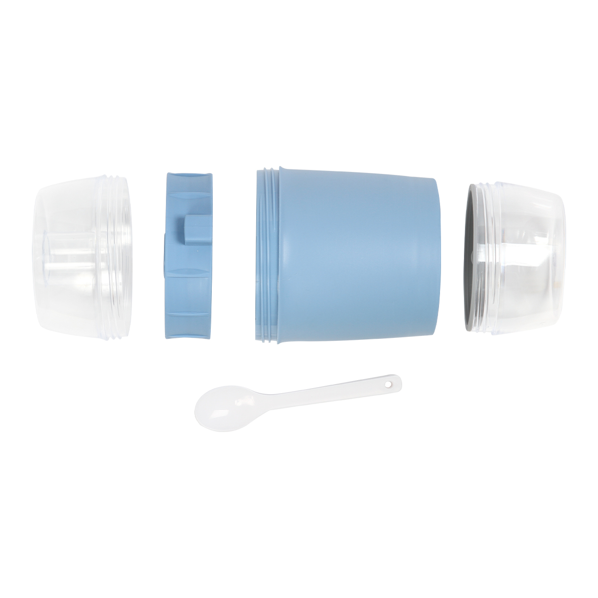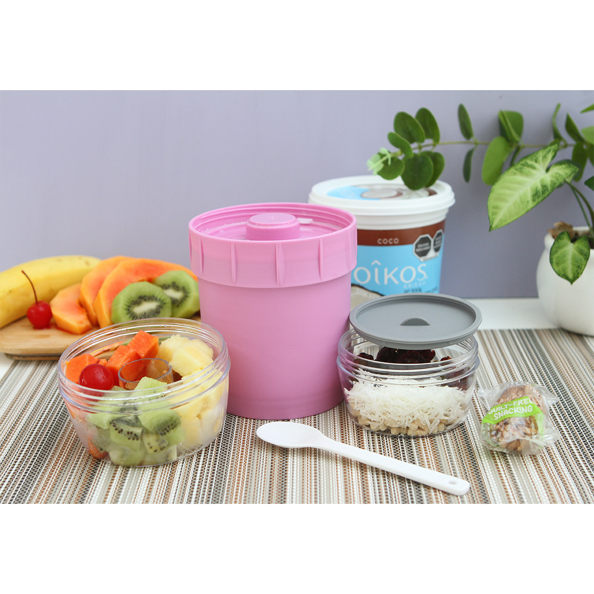 Mantén tus alimentos organizados con este contenedor fabricado en plástico PS y PP de alta calidad, ligero y resistente. Cuenta con una capacidad de 590 ml, ideal para porciones individuales o para llevar snacks y comidas fuera de casa.
