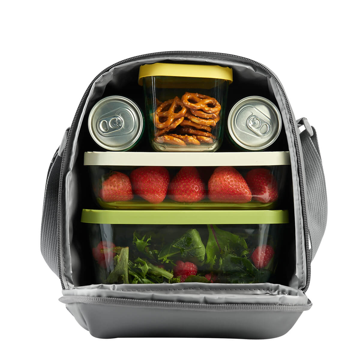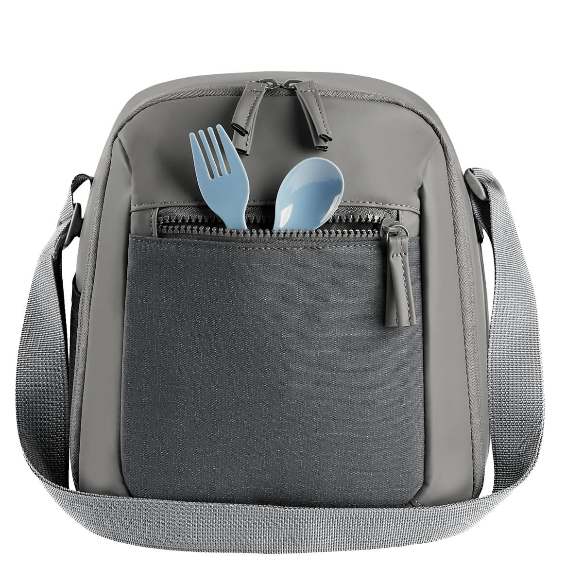 Lonchera con interior plastificado. Fabricada en curpiel, cuenta con un bolsillo principal con cierre que se abre en su totalidad, para facilitar el acceso a tus alimentos.