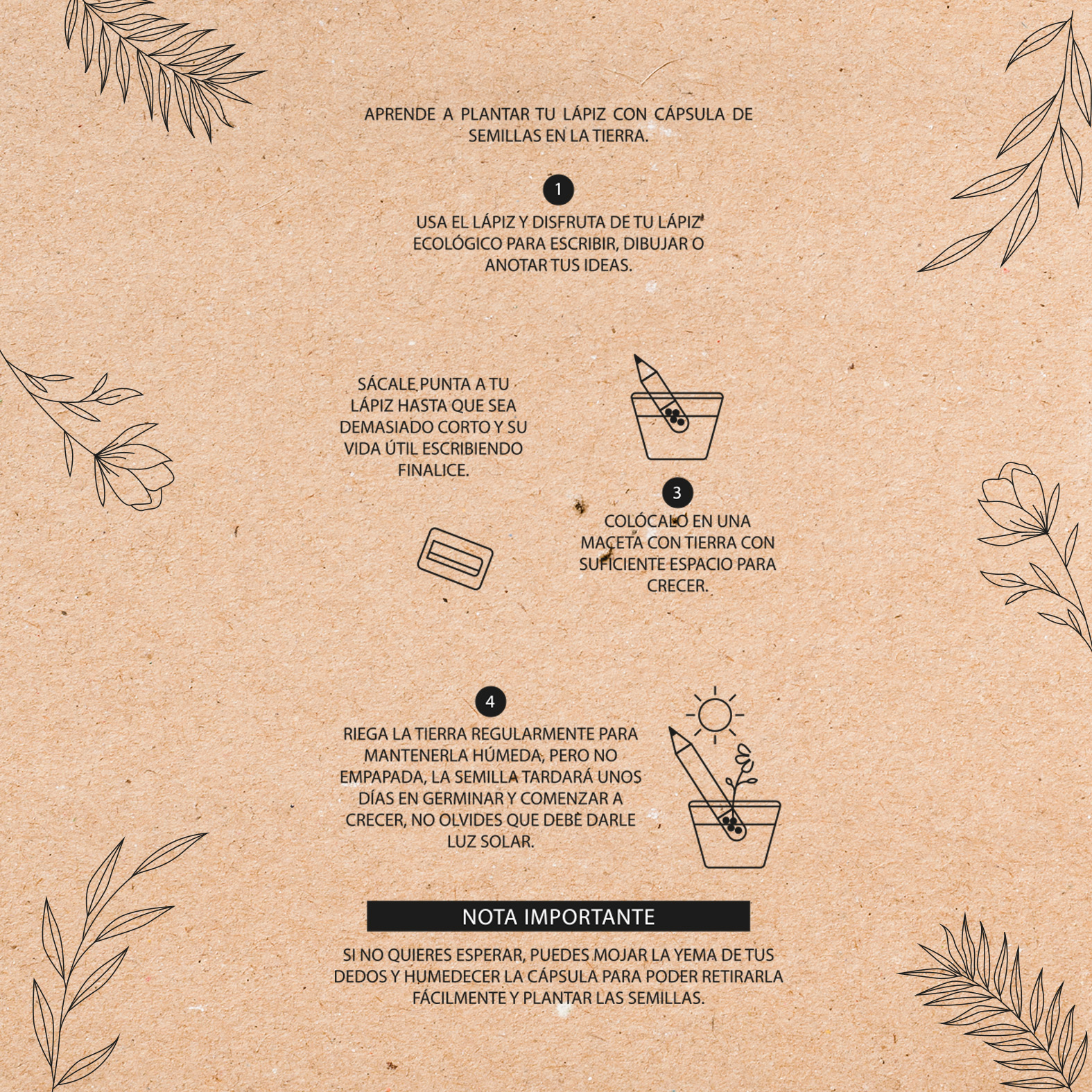 Lápiz ecológico fabricado con papel de periódico reciclado y semillas encapsuladas para cultivo. Al finalizar su uso, puedes plantarlo y darle una segunda vida, cultivando chía, chile, cilantro, alfalfa, tomate o lenteja. (Nunca tendrás dos iguales).