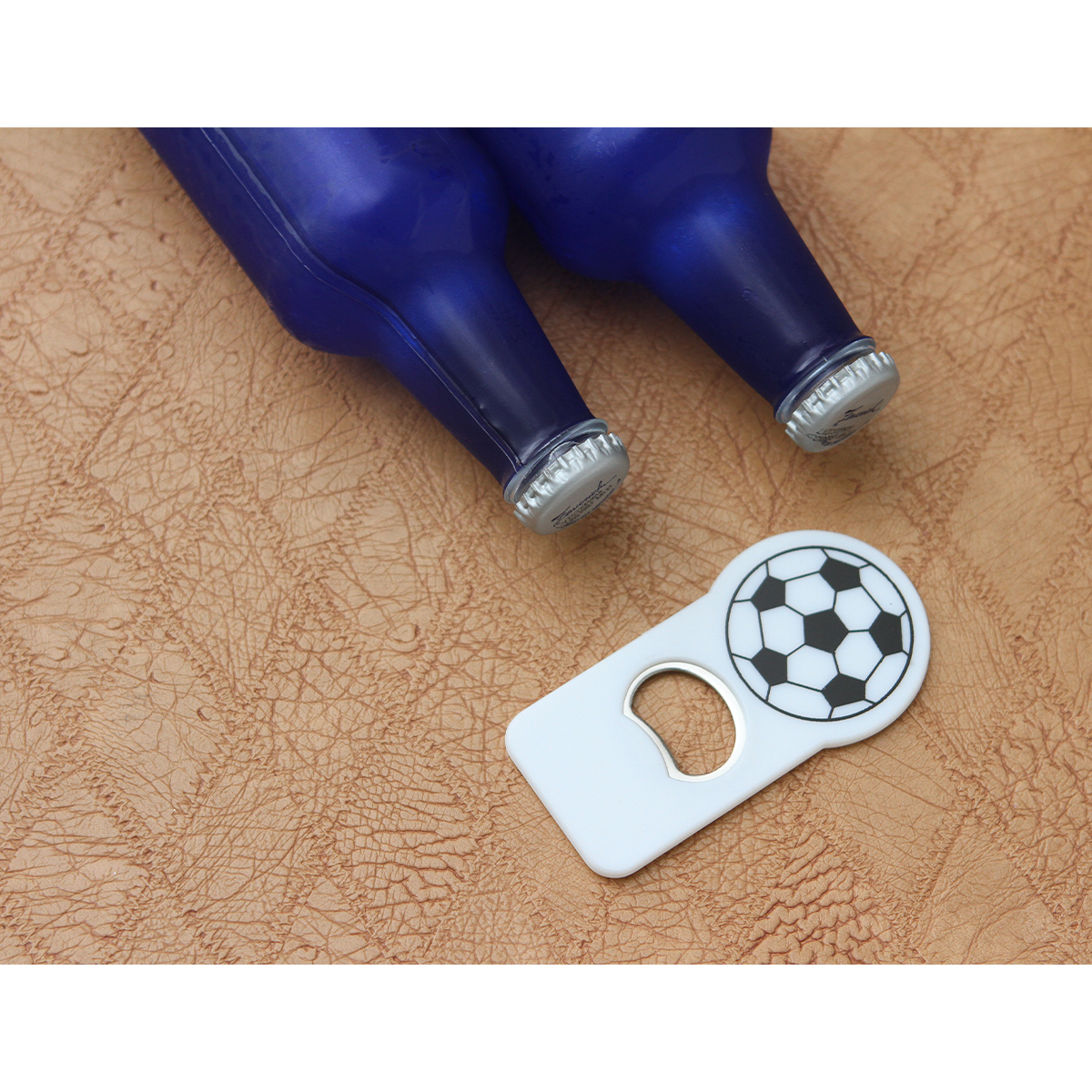 Abre tus bebidas con estilo y pasión por el fútbol! Este destapador con diseño futbolero es el accesorio perfecto para cualquier aficionado. Fabricado en acero inoxidable y plástico HIPS (poliestireno de alto impacto) caracterizado por su alta resistencia, ofrece durabilidad y un agarre cómodo.